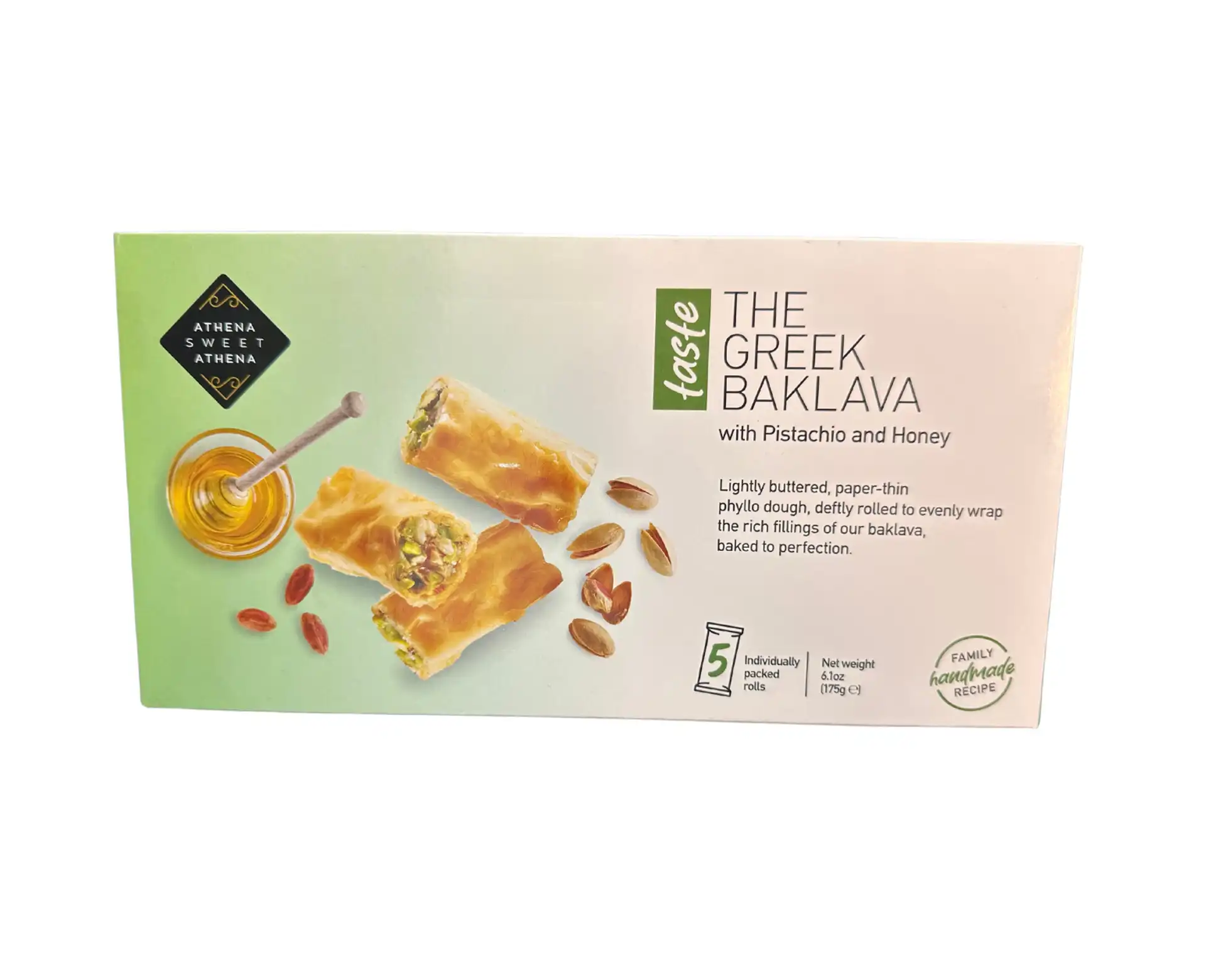 Athena Sweet Athena – Greek Baklava with Pistachio & Honey Indulge in the rich, authentic flavors of Greece with Athena Sweet Athena Baklava. This exquisite pastry is crafted with layers of flaky, golden phyllo dough, generously filled with crushed pistachios and sweetened with pure Greek honey. Each bite delivers a perfect balance of crunch, nuttiness, and syrupy sweetness, making it an irresistible treat for any occasion. Enjoy it as a decadent dessert or pair it with coffee or tea for a true Mediterranean experience.