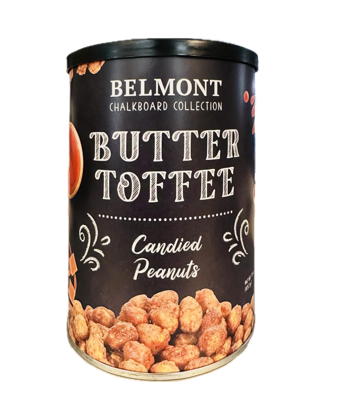 Belmont Chalkboard Collection – Butter Toffee Candied Peanuts Indulge in the irresistible crunch of Belmont Chalkboard Collection Butter Toffee Candied Peanuts, a delightful fusion of sweet, buttery toffee and roasted peanuts. Each peanut is coated in a rich, golden toffee glaze, creating a crispy, caramelized crunch that melts in your mouth with every bite. Crafted with premium ingredients, these candied peanuts deliver the perfect balance of sweetness and nuttiness, making them an ideal treat for snacking, gifting, or sharing. Whether enjoyed on their own or as a topping for desserts, they bring a touch of luxury and nostalgia to every occasion. Savor the buttery, crunchy goodness of this classic confection—a true treat for peanut and toffee lovers alike!