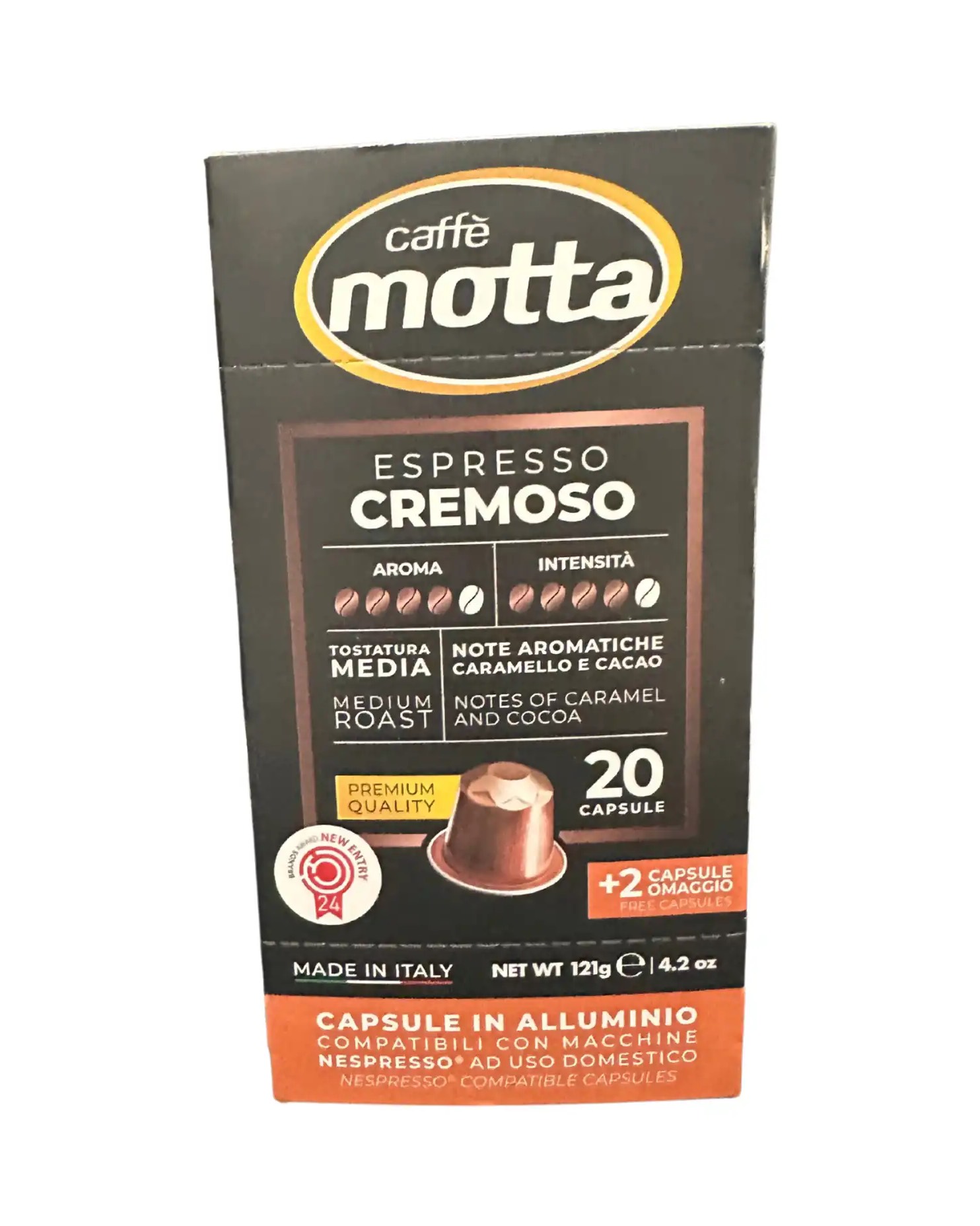 Caffé Motta Espresso Cremoso (K-Cup) Indulge in the rich and velvety taste of Caffé Motta Espresso Cremoso, now available in convenient K-Cups. This premium Italian espresso blend delivers a smooth, full-bodied flavor with a perfect balance of intensity and creaminess, making every cup a true café-style experience. Crafted from high-quality coffee beans, Espresso Cremoso offers a bold aroma, a silky crema, and a satisfying finish, perfect for espresso lovers who enjoy a luxuriously smooth and well-rounded taste. Compatible with K-Cup brewers, this espresso brings Italian tradition and excellence straight to your home or office—one cup at a time!