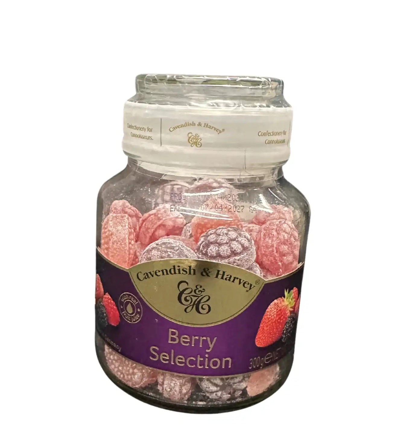 Cavendish & Harvey – Berry Selection (300g) Enjoy the rich and fruity flavors of Cavendish & Harvey Berry Selection, a delightful mix of premium berry-flavored hard candies. This elegant tin contains a mouthwatering blend of raspberry, blackberry, and blueberry flavors, offering the perfect balance of sweetness and tanginess. Dusted with a fine layer of icing sugar, each candy delivers a smooth and satisfying taste. Perfect for sharing, gifting, or indulging in a burst of berry goodness anytime!