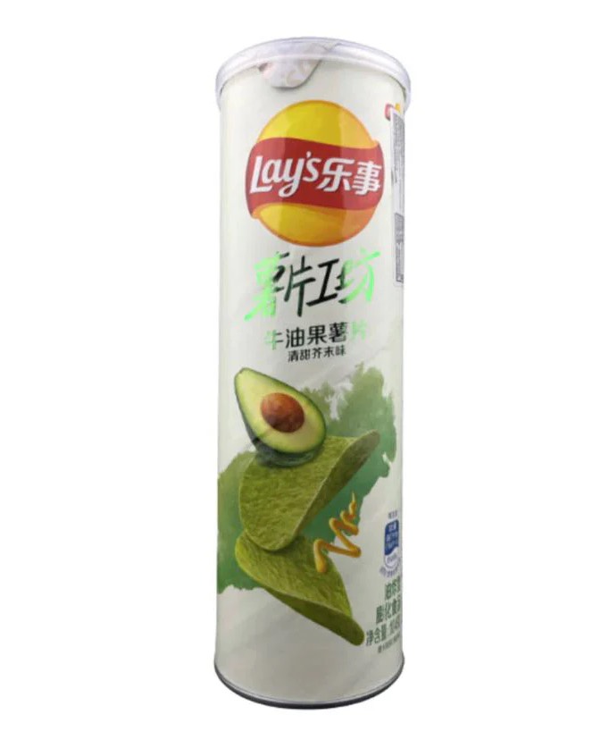 Crispy potato chips seasoned with a blend of avocado and mustard for a unique flavor experience.